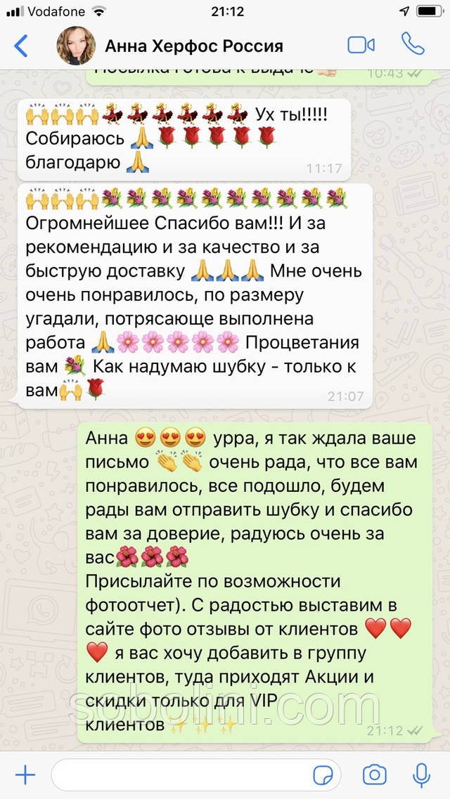 Відгук від клієнта магазину Соболіні на парку з песцем і довгий жилет із песця.