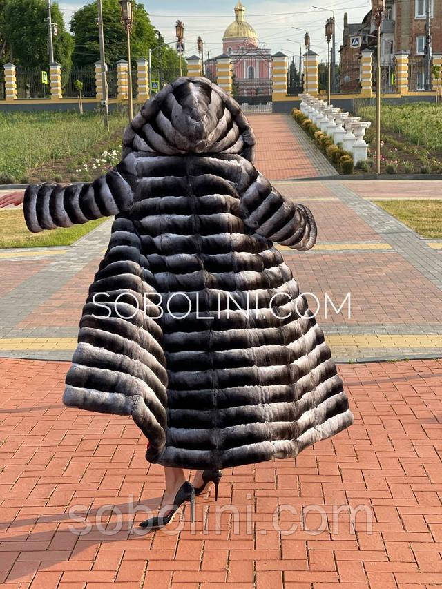 Шуба з хутра шиншили з капюшоном кобра