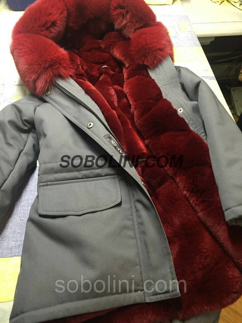Підліткова Парка з хутром фінського песця, всередині хутро кролика Рекса колір марсала, матеріал плащ-котон