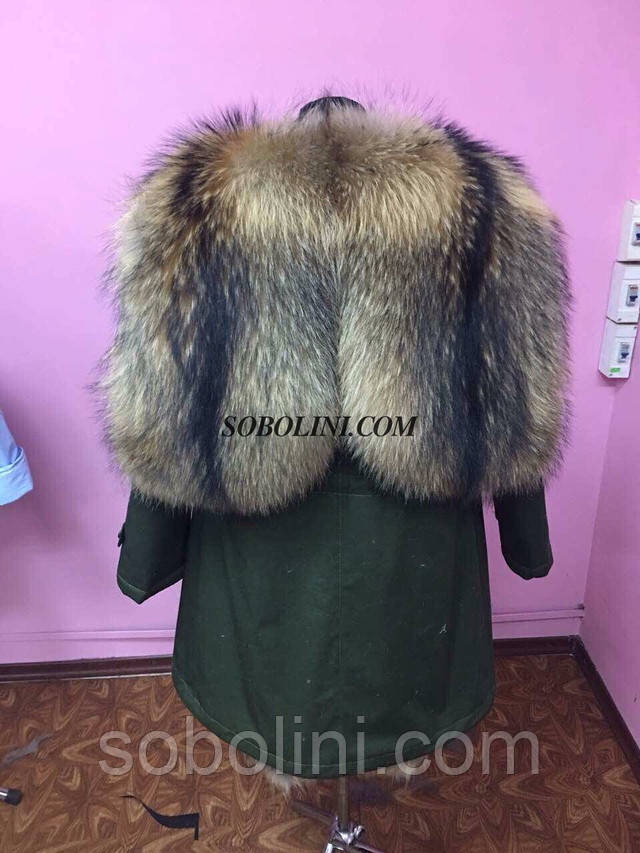 Шикарна парка 3 в 1 з хутром канадського єнота, всередині повністю хутро єнота, котон кольору хакі