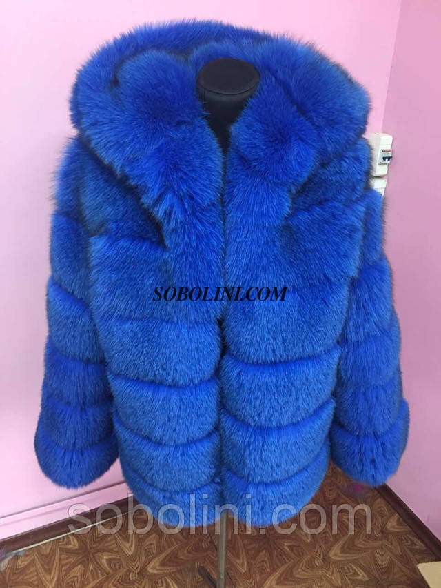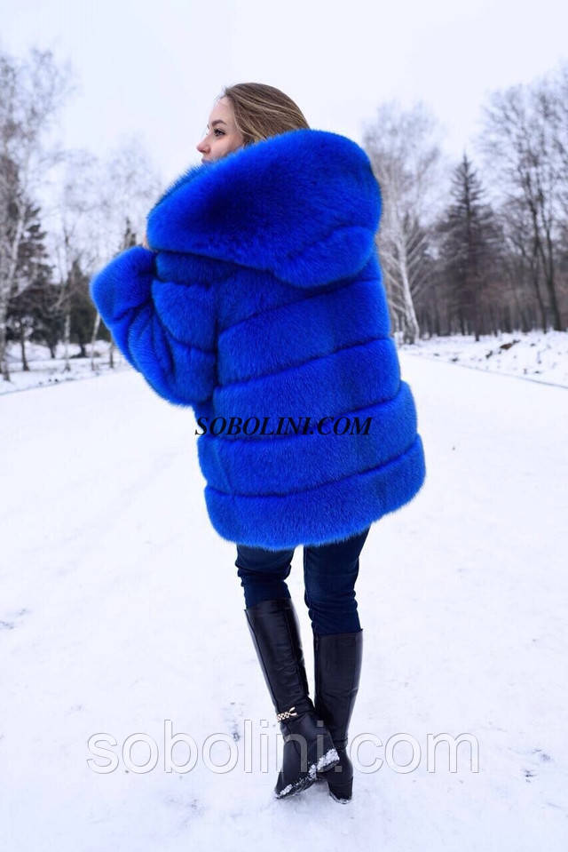 Неймовірно гарна шубка з хутра фінського песця з капюшоном, колір електрик, довжина 70 см. Дуже тепла і модна річ.