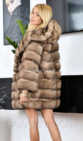 Шикарна шубка з хутра соболя з капюшоном "кобра", на кнопках, довжина 84 см.