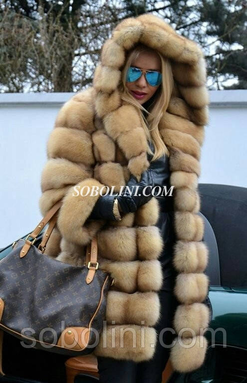 Чудова шубка з хутра соболя тортор із капюшоном "кобра", поперечний крій, довжина 85 см.