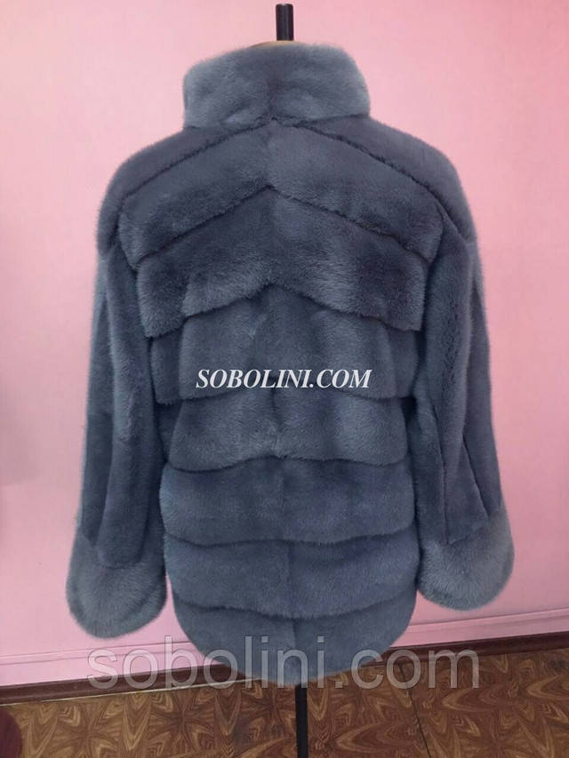Кожушок із хутра скандинавської норки, колір графіт, комір-стійка, комбінований крій.