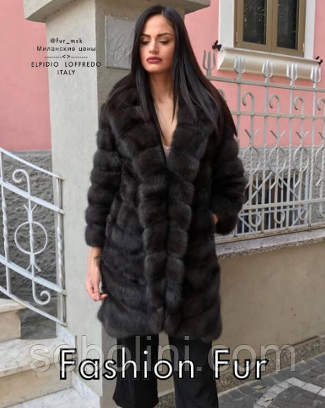 Чудова шуба з хутра баргузинського соболю, комір відкладний, рукав 3/4, довжина 90 см. Статусна річ, класика, що не виходить із моди і краса — все в одному виробі.