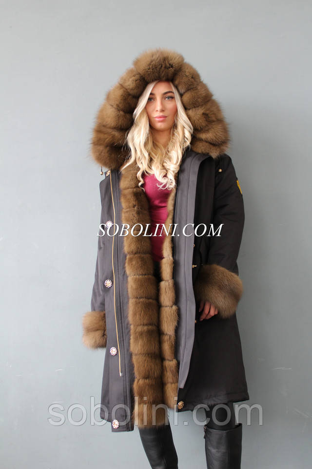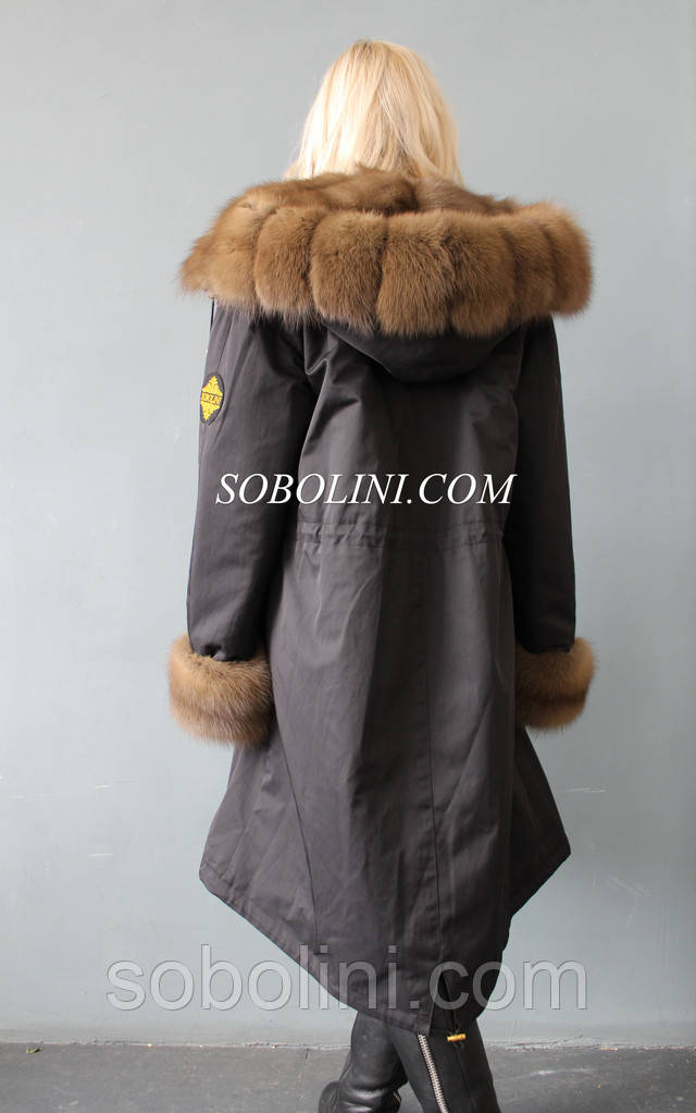 Парка з хутра лісової куниці, тонована в колір Тортор, передня планка куниці по 15 см