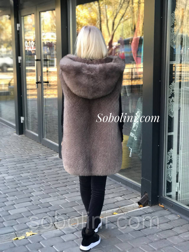 Дуже гарний і стильний жилет з фінського песця з капюшоном. Колір під соболю тортора, довжина 75 см. Шкурки цілісні розташуванням вниз, на блискавці.Такий жилет чудово підкреслить вашу яскравість та індивідуальність!